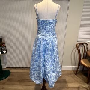 Classic toile pattern. Hourglass. Sleeveless. Sweetheart. Side zipper closure.