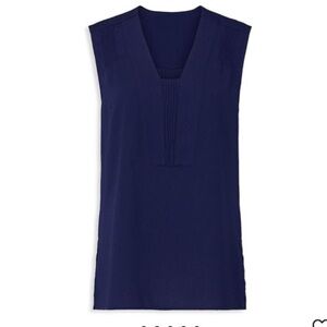 Modern tailoring defines the boxy silhouette of this top. Made of lightweight crepe, it features pintuck panels at the shoulders and neckline. Wear yours with dark-wash denim. V-neck Sleeveless Pullover style Lined Polyester Dry clean Imported