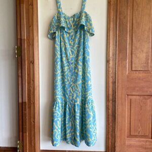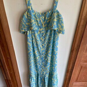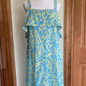 Derek Lam Collective Blue Yellow Scribble Ruffle Midi Dress