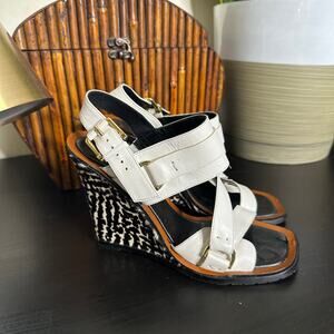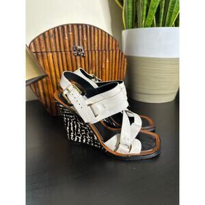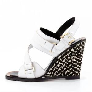 DEREK LAM Gillis Calf Hair Leather Wedge Sandals White
