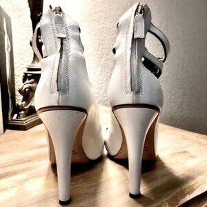 DEREK LAM Italy White Caged Leather Peep Toe Stiletto Heels 10 MSRP $1175