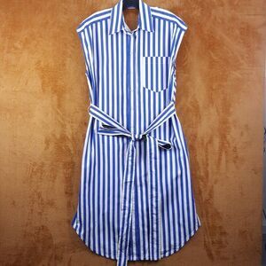 DEREK LAM Shirt Dress Womens Size 6 Blue Stripe Button Up Belted Pocket Collared