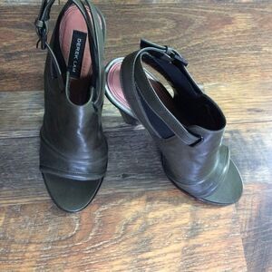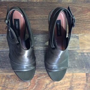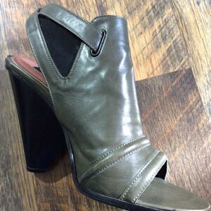 DEREK LAM Peep Toe Green Leather Booties Sz 7