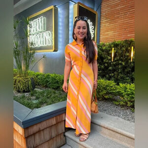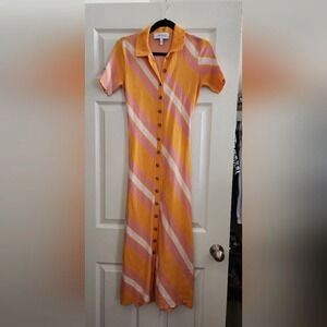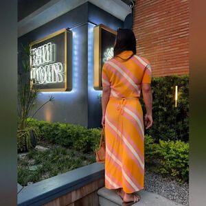 DEREK Lam 10 Crosby Aurelia Waist Tie Sweater Dress - Orange-Pink-White, XS