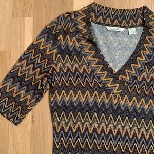 DEREK heart Bodycon Striped V-Neck Mini Dress Brown/Orange/Blue/Yellow Women’s M