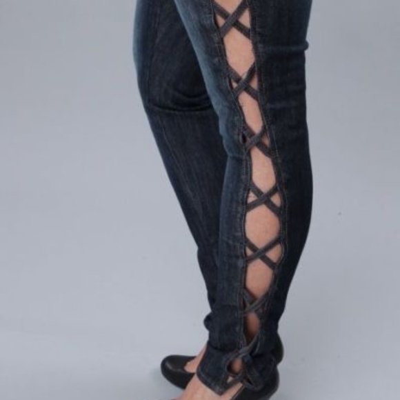 DEREON OPEN LEG SKINNY JEANS ZIP & BUTTON CLOSURE