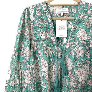 DESERT QUEEN Floral Tassel Boho Blouse NWT 36/S (US 4)