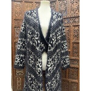 DESIGN HISTORY L Cardigan Sweater Black Open Front Knit Soft Duster Geometric