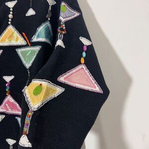 DESIGN OPTIONS Cardigan Sweater Martini Glass 3D Beaded Multicolor Bling Knit