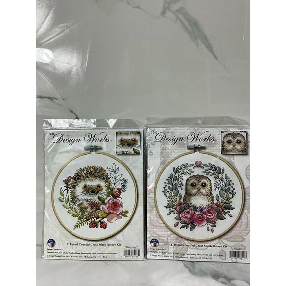 Lot of 2 cross stitch kits. Adorable hedgehog and owl. New unopened