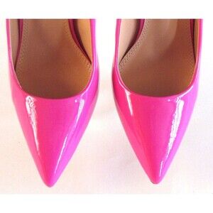 DESIGNER LILIANA PINK FAUX PATENT LEATHER POINTED TOE HIGH HEEL PUMPS 8.5 M