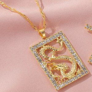 DESIGNER LUCKY DRAGON GOLD CLEAR CRYSTAL PENDANT CHAIN NECKLACE**NEW!
