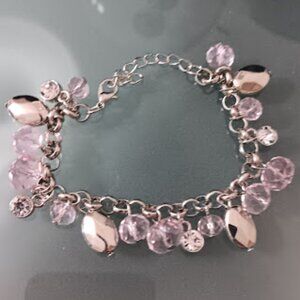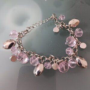ONLY **1** LEFT!!! NEW (No Tag)!!! DESIGNER Mod/Contemporary Silver Pale Pink Clear Crystal Charm Rolo Bracelet**Silver Rolo Chain Charm Bracelet features Diamond Cut Oval Shaped Silver Beads, Faceted Pale Pink Beads & Round Bezel Set Clear Crystals! Beautiful Charm Bracelet to wear by itself or layer it with other Bracelets!**Bracelet is 6.75" + 2" Extender/Lobster Clasp**NEW (No Tag)