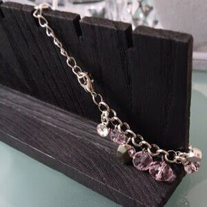 DESIGNER Mod/Contemporary Silver Pale Pink Clear Crystal Charm Rolo Bracelet