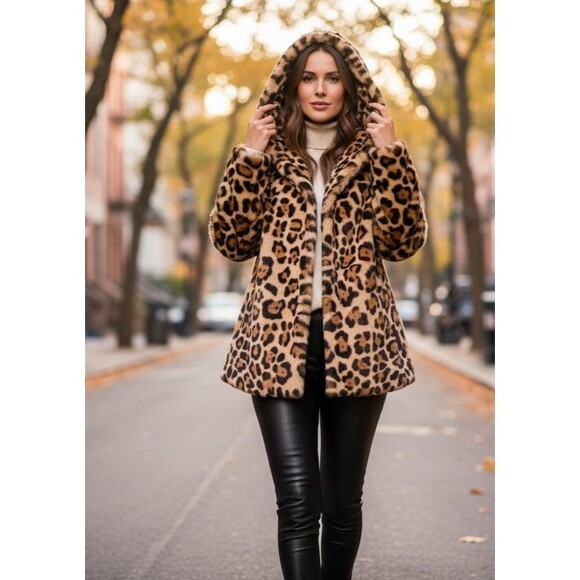 With a unique animal print pattern and a hood for added protection, this coat is ideal for winter and fall seasons. Made in Türkiye, this coat combines quality craftsmanship with a fashionable designer touch, making it a standout piece for any outfit.