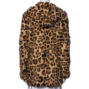 DESIGNER RTA ANIMAL PRINT RABBIT FUR HOODED LONG SLEEVE MIDI LENGTH SIZE XSMALL