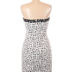 TAGS: DESIGNER DRESS WHITE AND BLACK DOTS DESIGN STRAPLESS DRESSES SUMMER DRESES EVENING DRESSES