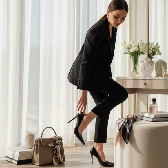 The solid black color and narrow shoe width make them versatile for both workwear and social occasions, while the pointed toe adds a touch of sophistication.