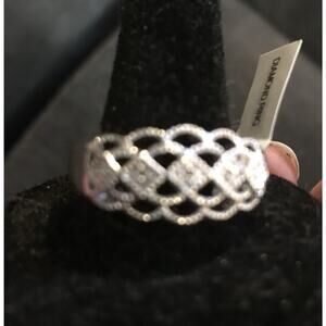 DESIGNER STYLE REAL DIAMONDS BASKET WEAVE SILVER TONE BAND RING SZ 8 VINTAGE