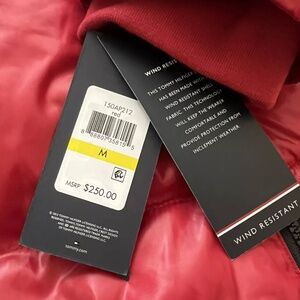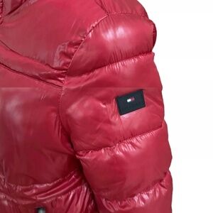Designer TH TOMMY HILFIGER MEN'S QUILTED PUFFER HOODED RED JACKET