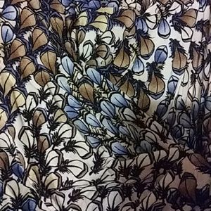 Designer Wrap Dress - Excellent Condition - Unique Sea Shell Like All Over Pattern - Flattering Wrap Panel [Shown 2nd Pic] - Cap Sleeve - Deep V Neck - Knee Length - Will Accept REASONABLE Offers