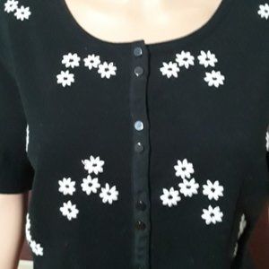 DESIGNERS ORIGINALS BLACK W/WHITE EMBROIDERED FLOWERS SHORT SWEATER SIZE S NWT