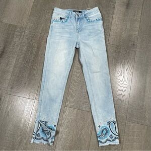 DESIGUAL Blue Embroidered Detail Jeans Size 26 ankle zippers