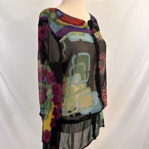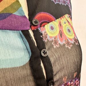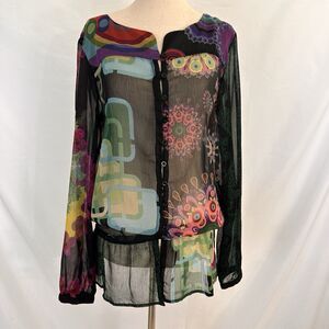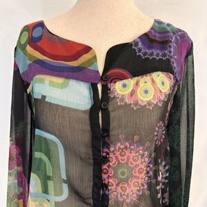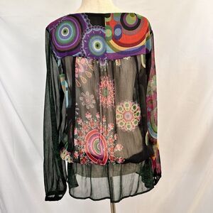 Beautiful Multicolored DESIGUAL Long Sleeved Sheer Blouse, Size M