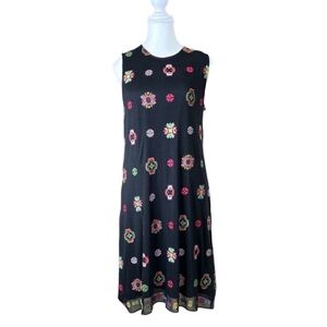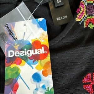 Desigual Dress, Lined, No Pockets. PTP 18", Length 37 1/2". No Flaws. Embrace elegance with this Desigual black embroidered dress. Perfect for any occasion, it features a vibrant floral pattern that adds a touch of color to your wardrobe.
