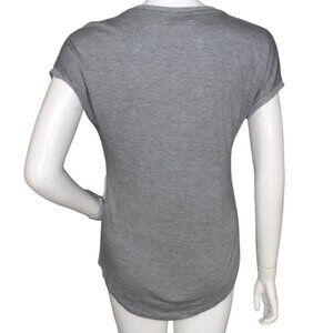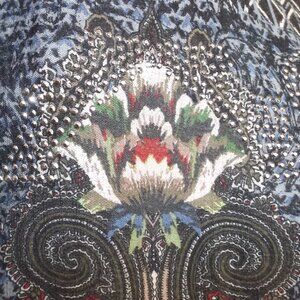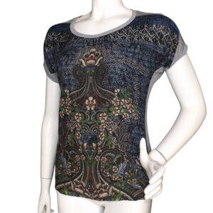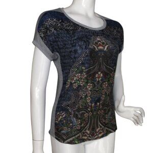DESIGUAL Tee, XS, Grey/Multicolor Floral, Silvery Rhinestones/Studs, Cap sleeve