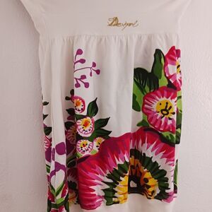 DESIGUAL Womens Graphic Halter Top Medium White Floral dress. new with tags. ot has a stain on the waist. see pictures dor details