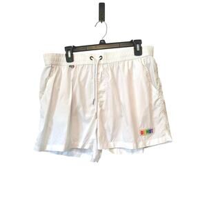 DESMIIT White Swim Trunks Rainbow Pocket XL