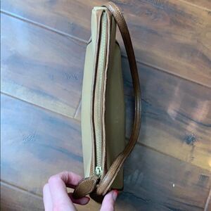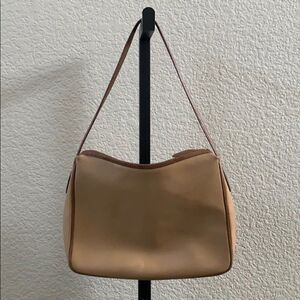 Gently used. Some spots on exterior. One corner has a scuff mark. Inside of shoulder strap it shows light wear. See last four pictures.