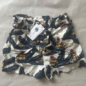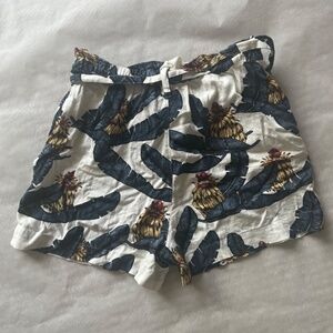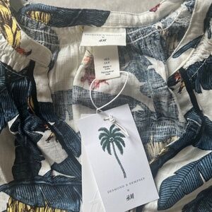 DESMOND & DEMPSEY x H&M Linen-blend Paper-bag Banana Leaves Exotic Belted Shorts