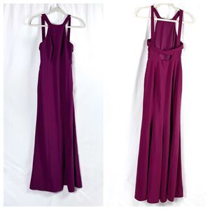 •Additional Details: Burgundy Jewel town gown. Hidden side zip closure. Sleeveless. Front thigh-high slit. Lined. Special occasion. Wedding. Bridesmaid. Cocktail. Party. Formal. Elegant. Style 3039. ** Color of item may vary due to lighting/shadows and screen settings.**