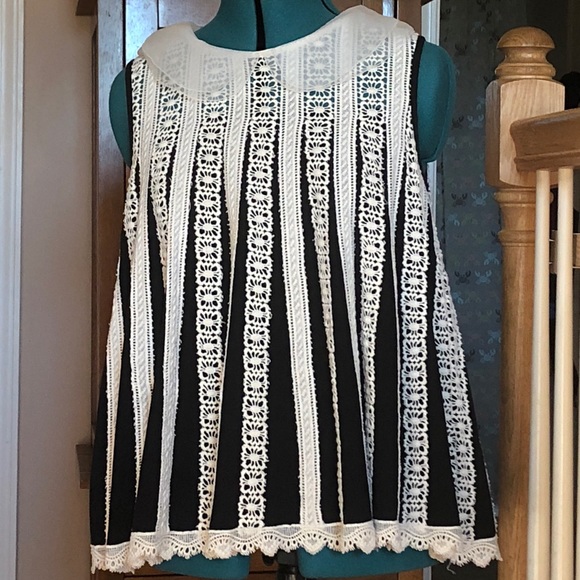 Black and off-white sleeveless blouse