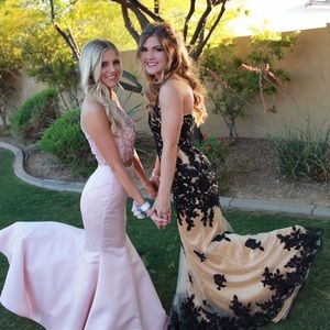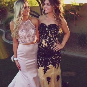 Size 2. I am 5'4. It has a beautiful lace train (not too long). Not Sherri hill, just for exposure. It is GLS (still a designer brand). Make offers!