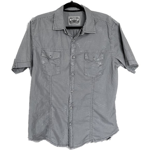*DETAILED RED SEAMS* Jeremiah Large Gray Short Sleeve Button Down Shirt Pocket
