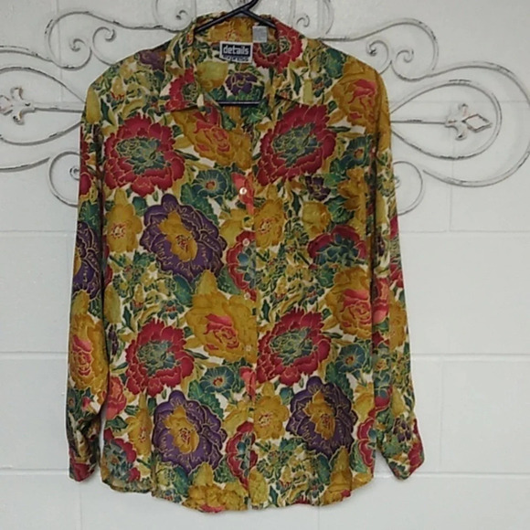 DETAILS EXPRESS JEWEL TONED, 100% SILK, FLORAL BOHO BLOUSE