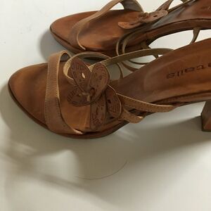 EXCELLENT CONDITION DETAILS LEATHER SANDALS WITH FLOWER DETAIL. SIZE 8B.