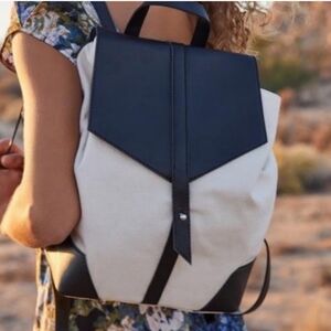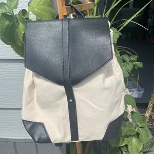 Brand new..Beautiful Canvas. Keep your belongings saved and snug in the cutest Canvas Backpack, it features adjustable straps, a top handle, and a post-closure! making it the perfect bad for all of your belonging, comfortable, perfect for travel or a day out, 12" shoulder drop, Canvas & PU, Vegan Accents, inside is lined in black fabric, with one pocket, the sides of the bag snaps together or unsnaps, comes with dust bag, 13.5 x 12x 5.5