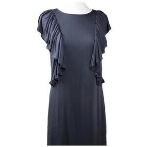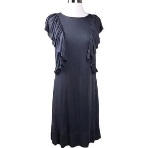 DEVELOPMENT ERICA DAVIES Brown Shift Jersey Dress Flutter Sleeve Viscose Silk 0