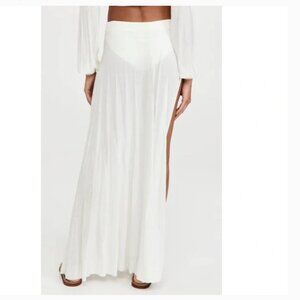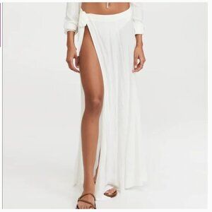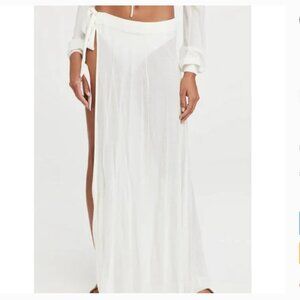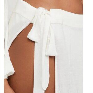 Open side with wrap-tie closure. Semi-sheer knit fabric with accent ribbing.
