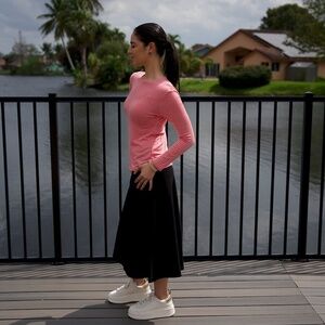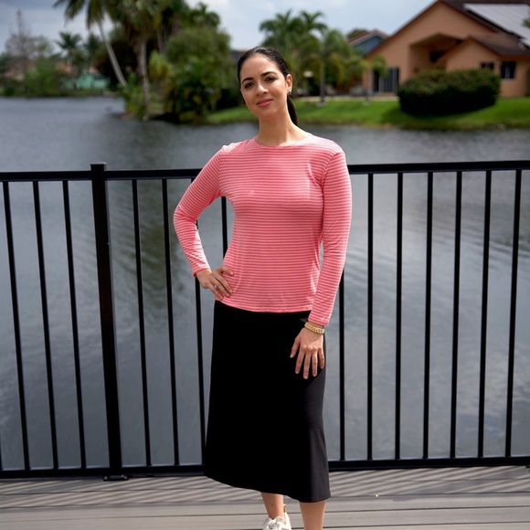 DEVORAH'S SECRET Coral Modest Top/Shell White Stripes