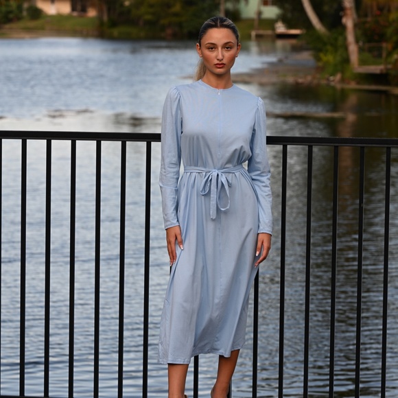DEVORAH'S SECRET Light Blue Modest Midi Dress 100% Cotton