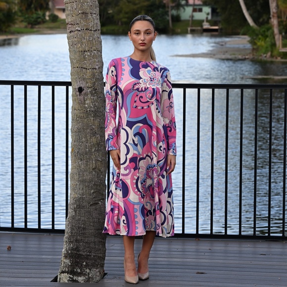 DEVORAH'S SECRET Modest Midi Dress Modern Floral Pink & Fuchsia /Regular& Plus