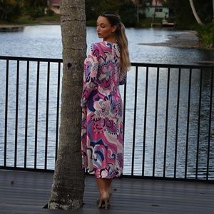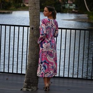 This very classy and elegant midi dress can be worn as a robe or dress depending on your occasion or mood. The A-line silhouette flatters most body types.