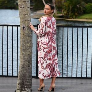 This very classy and elegant midi dress can be worn as a robe or dress depending on your occasion or mood. The A-line silhouette flatters most body types.