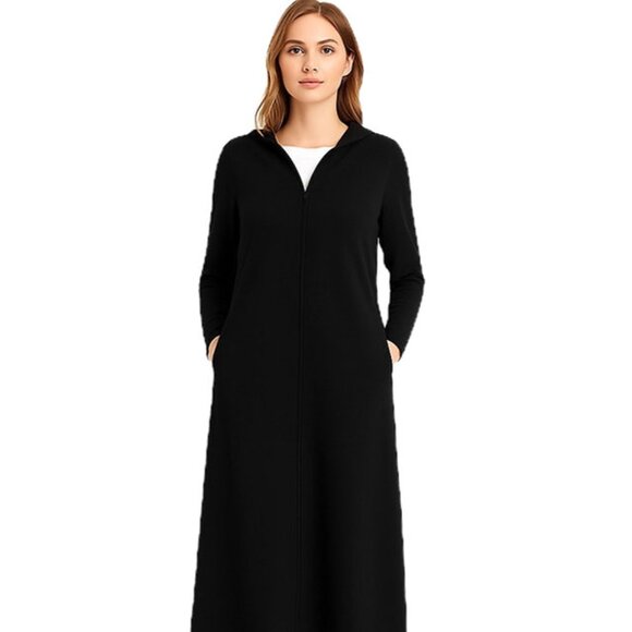 DEVORAH'S SECRET Modest Robe Front Zipper Hoodie French Terry Cotton Black