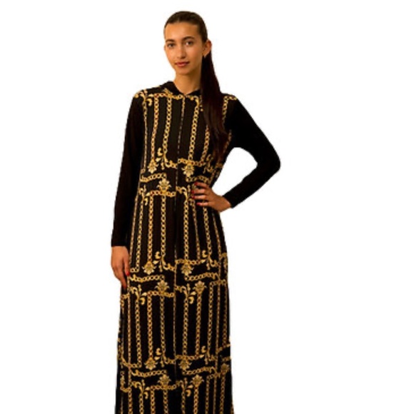 DEVORAH'S SECRET Modest Robe Front Zipper Hoodie Gold Chain